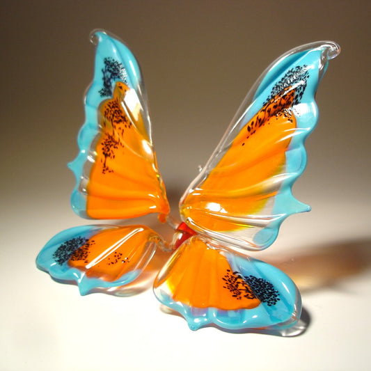 Blue with Orange & Black Glass Butterfly Figurine