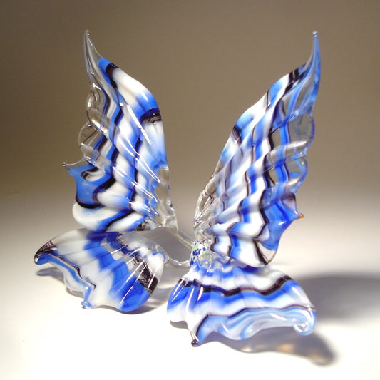 White and Blue Striped Glass Butterfly Figurine