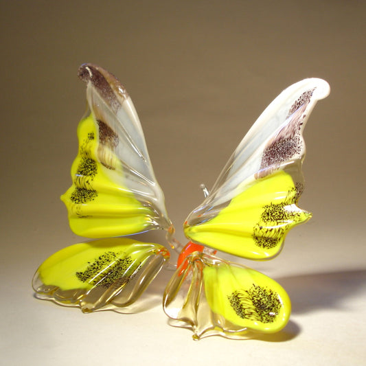 Yellow and White Glass Butterfly Figurine