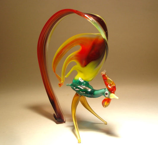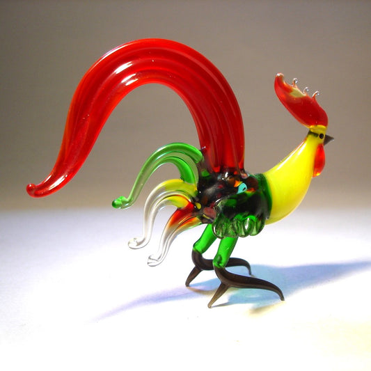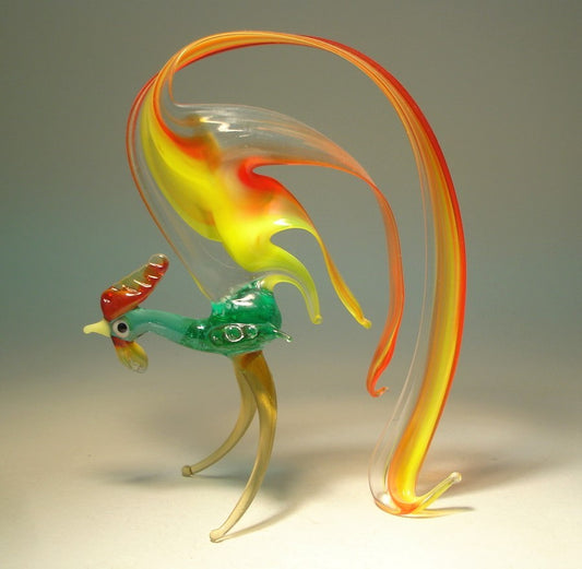 Gorgeous Green, Red & Yellow Tail Glass Rooster Figurine