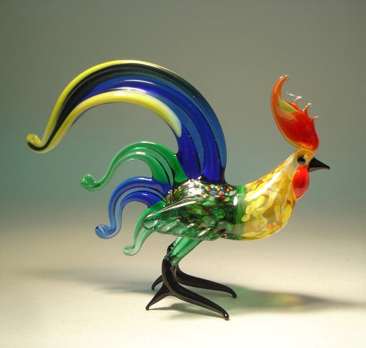 Know someone who adores roosters? Add a vibrant splash of color to your space with our stunning glass rooster figurines. Celebrate the sun and bring joy, good fortune, and prosperity into your life with these charming feathered companions. Whether you're enhancing your room décor or starting a collection, these marvelous glass roosters are sure to brighten any space!