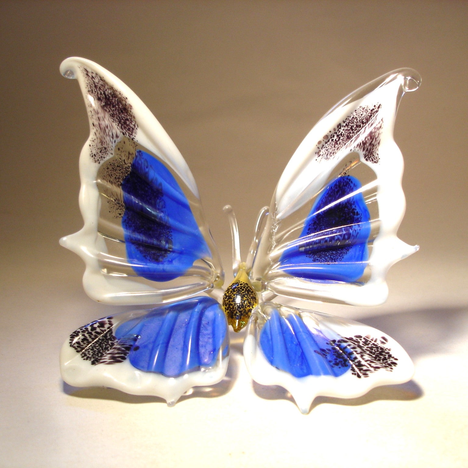 This striking Blue and White glass butterfly rests gracefully near a garden fountain, embodying the fleeting beauty of nature. While humans may spend years seeking their soulmate, a butterfly's time is precious, often measured in weeks. Let this exquisite glass figurine serve as a symbol of hope and possibility—a reminder that today could be the day for something truly magical to unfold.